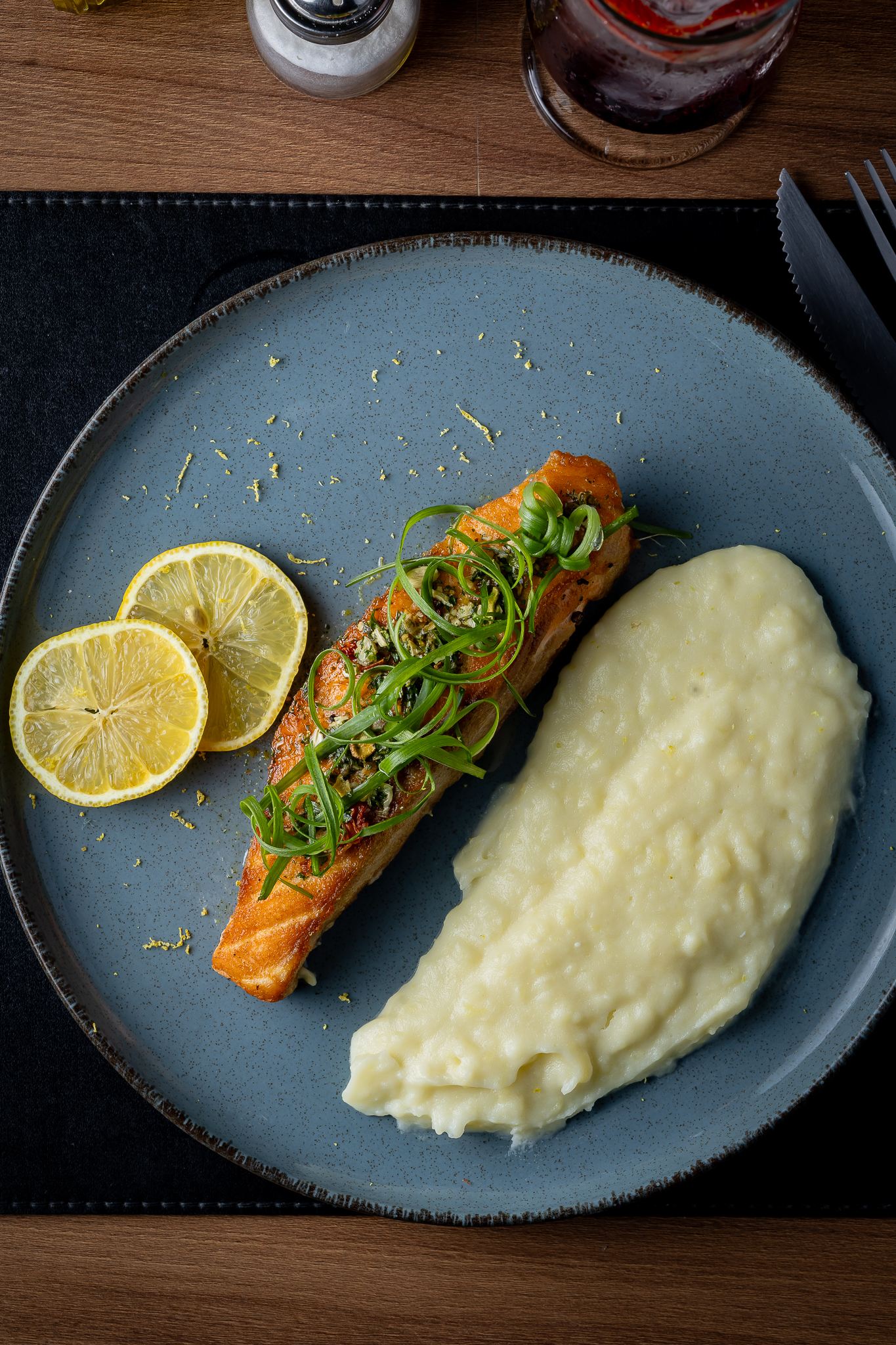 Mousselini de Salmão Delicioso purê de batata mousselini, acompanhado de um corte de salmão. R$ 69,90