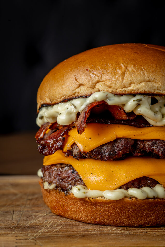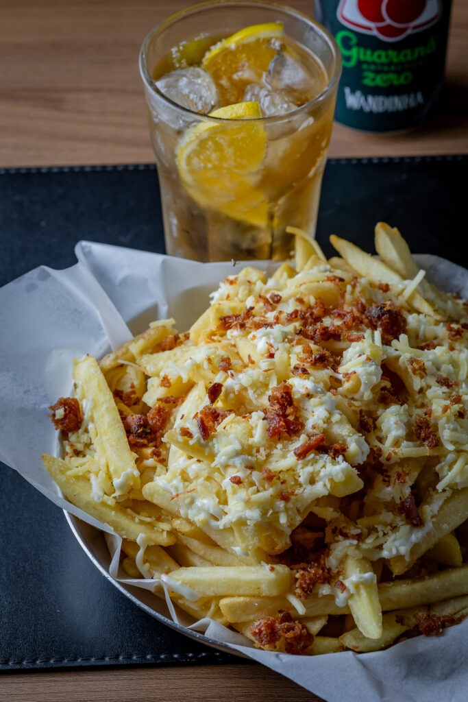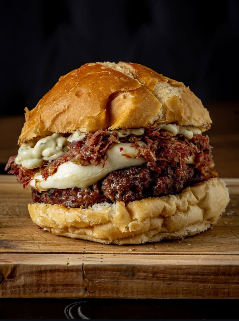 Parrilla Cheddar Pão australiano, 150g de hambúrguer artesanal feito na parrilla, cheddar cremoso e cebola caramelizada. Acompanha fritas e refrigerante. R$ 42,90