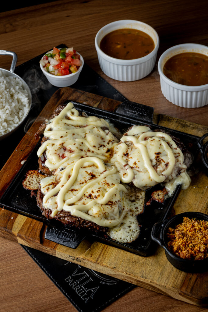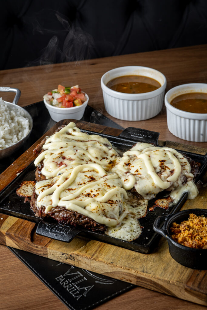 Chapa Ancho c/ Catupiry – 2 pessoas Deliciosa chapa de bife ancho c/ catupiry, que acompanha arroz, feijão, farofa e vinagrete. R$ 179,90