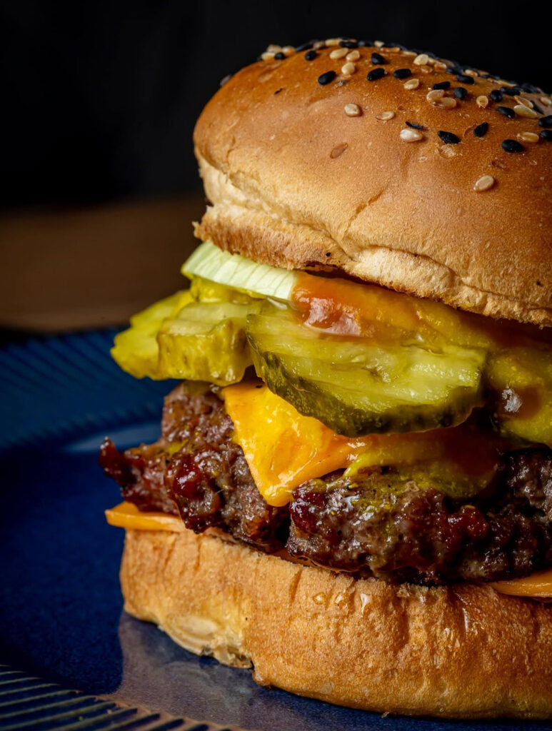 VilaPicles Pão gergelim, blend 150g parrilla, queijo cheddar, picles, cebola, katchup e mostarda R$ 33,90