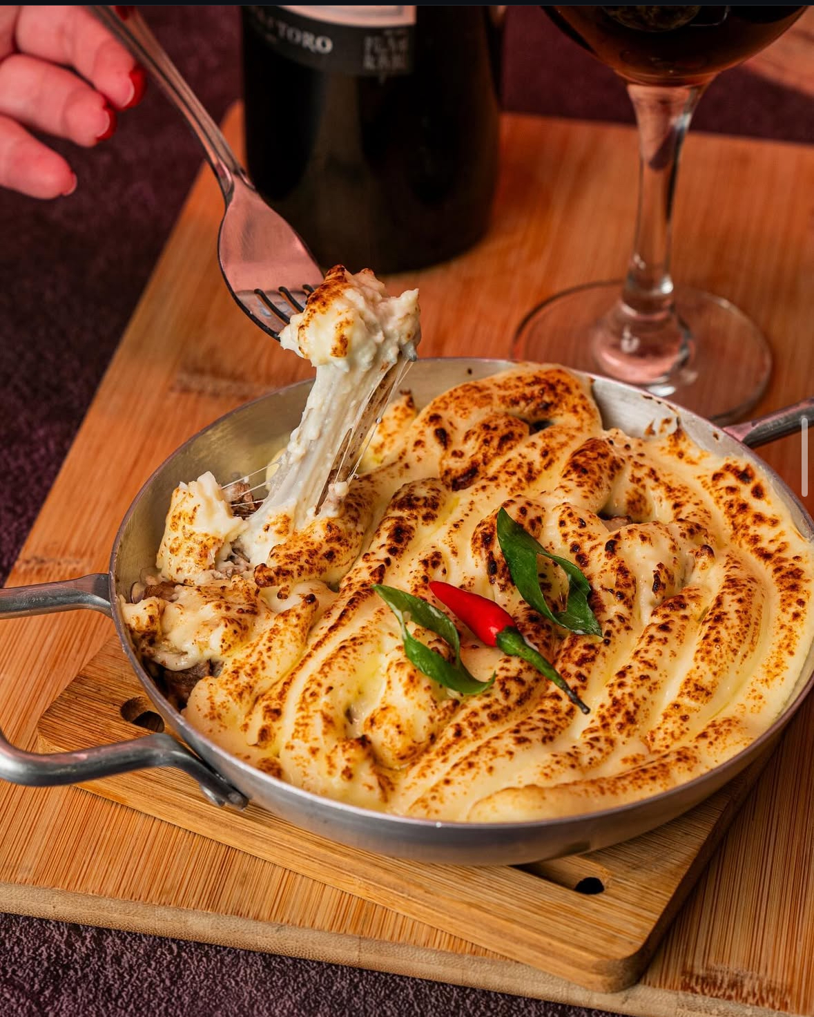 Potato c/ Bife Ancho Maravilhoso potato recheado com mussarela, calabresa, catupíry e parmesão. R$ 59,90