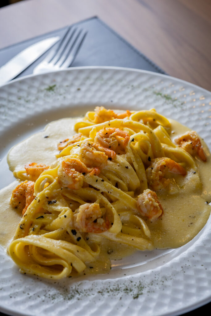Fettuccine ao limone c/ camarões Delicioso fettuccine ao molho limone c/ camarões, que traz uma refrescância e textura única. R$ 73,90